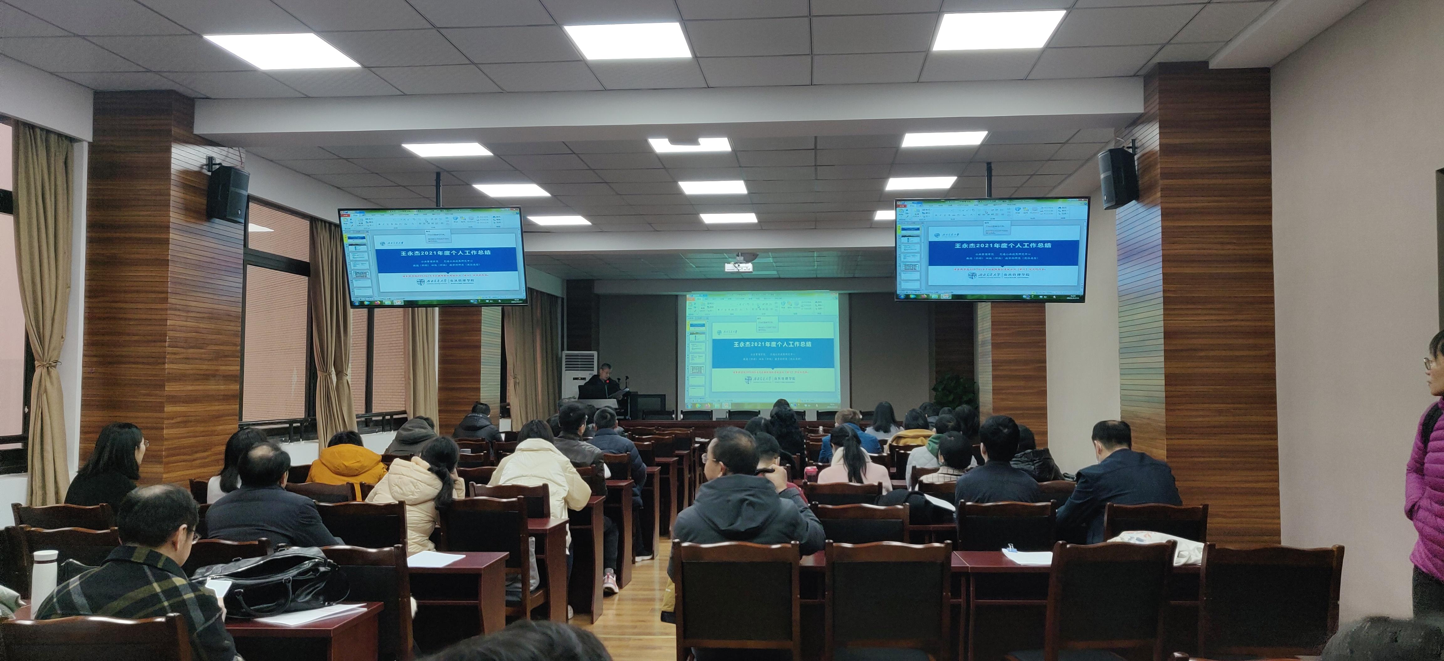首先,由院长王永杰同志主持全院专任教师,科研专岗教师、学院学术团队、其他专技岗、管理岗和辅导员依次进行了工作述职。老师们均对个人在2021年度所做的工作进行了全面的梳理、总结和汇报。