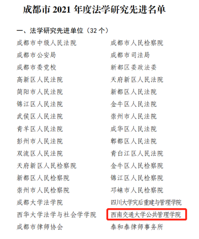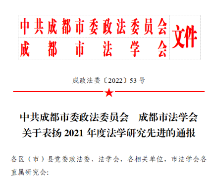 获成都市2021年度法学研究先进单位荣誉称号,91毛巾哥