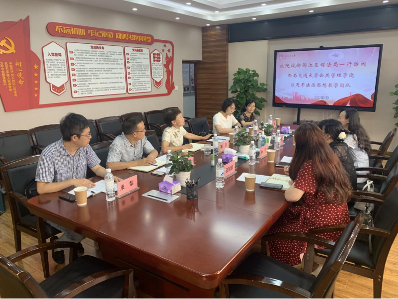 《习近平法治思想概论》教学团队取得的成绩及学院学科师资实力表示赞赏,并结合锦江区司法局的具体业务工作对习近平法治思想教育如何落地落实提出了思考和建议。整个会谈,气氛热烈,取得了建设性的成果。