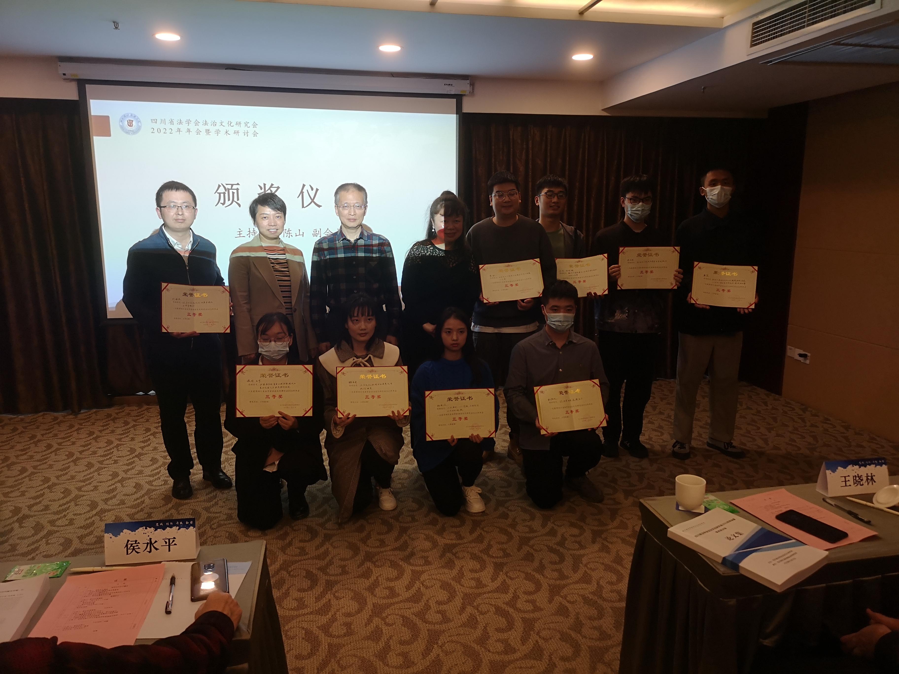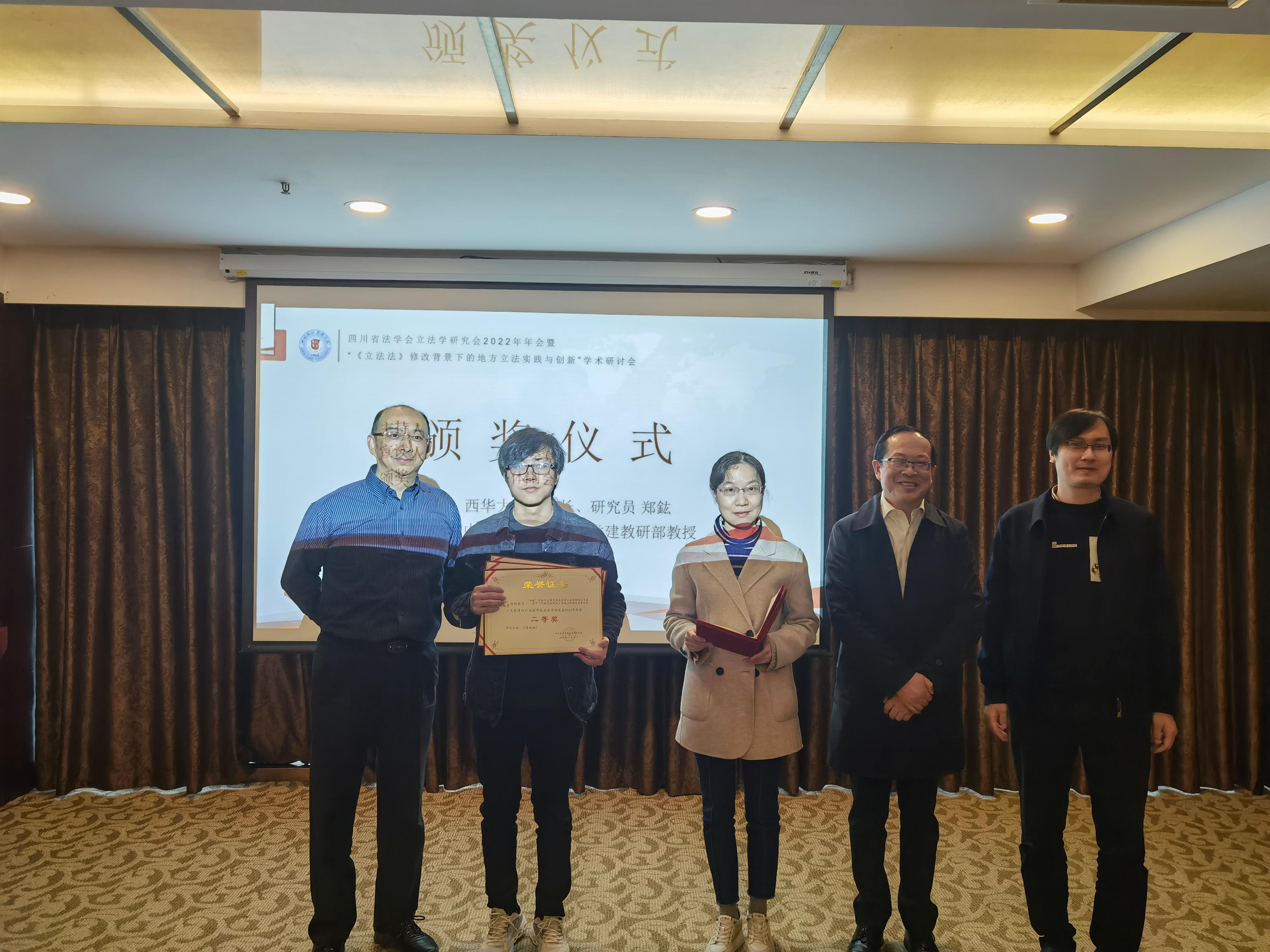 邓君韬副教授、法学硕士曾莉鑫、法律硕士邓悟合作《成都市红色文化资源保护地方立法研究》获年会优秀论文评选一等奖,法律硕士胡尚汶《以刑去刑——商鞅法律思想刑罚目的探微》获优秀论文评选三等奖。