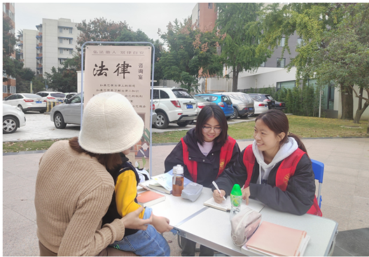的特色志愿服务团队,多年来以普法宣传为主线,面向金牛区110个社区开设“社区法律之家”志愿服务项目,在校内开展“大学生法律咨询室”活动,积极为周边居民和在校师生提供普法咨询及法律援助等服务,为创建和谐社会、平安校园而努力。2020年,法律援助队受邀成为成都市公共法律服务志愿者总队第一批志愿者成员。
