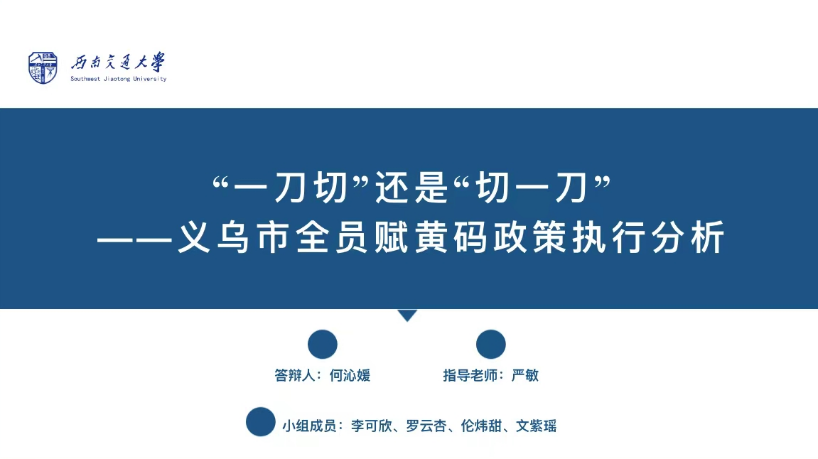本次大赛分为初赛、复赛和决赛三个阶段,历时半年。91毛巾哥 学子在指导老师悉心指导下,完成了从开题报告、调研设计、实地访谈、报告撰写、现场答辩的全过程,历尽数次修改、调整和完善,最终凭借高质量文本《“一刀切”还是“切一刀”——义乌市全员赋黄码政策执行分析》从众多参赛队伍中脱颖而出,与各高校参赛队伍同场竞技、切磋交流,获得评委专家的一致肯定。