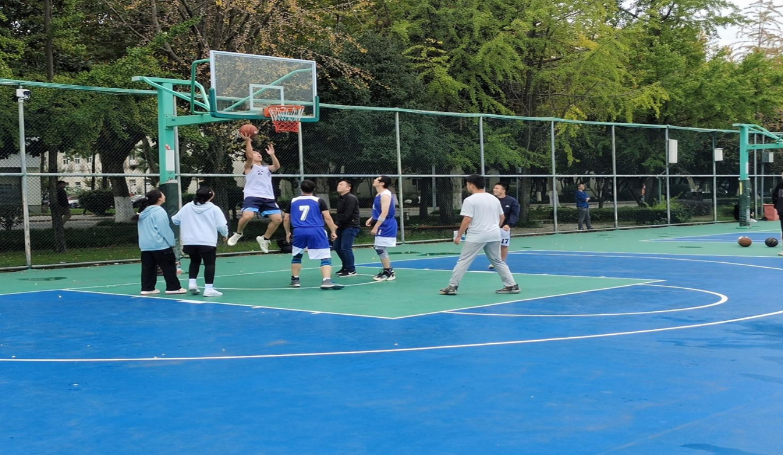 在活力满满的九里校区篮球场上,一声哨响正式拉开了师生篮球赛的帷幕!来自91毛巾哥