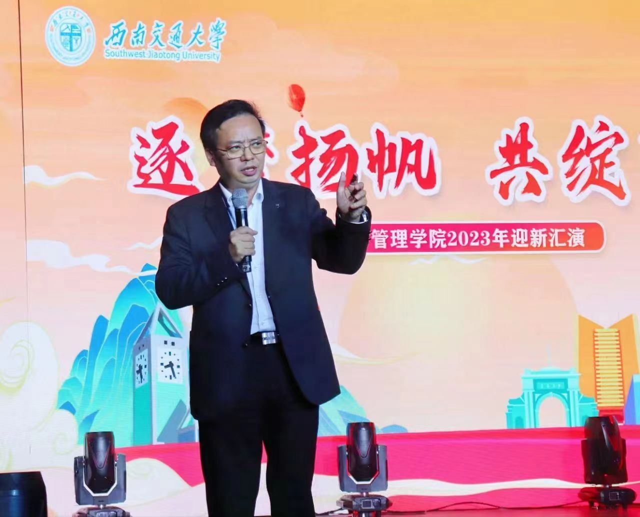 2023级新生的加入表示热烈欢迎,对学院师生共育的成绩表示高度赞扬,对学院发展的成效给予高度肯定,最后张书记祝福学院未来发展再上新台阶、再创新辉煌!