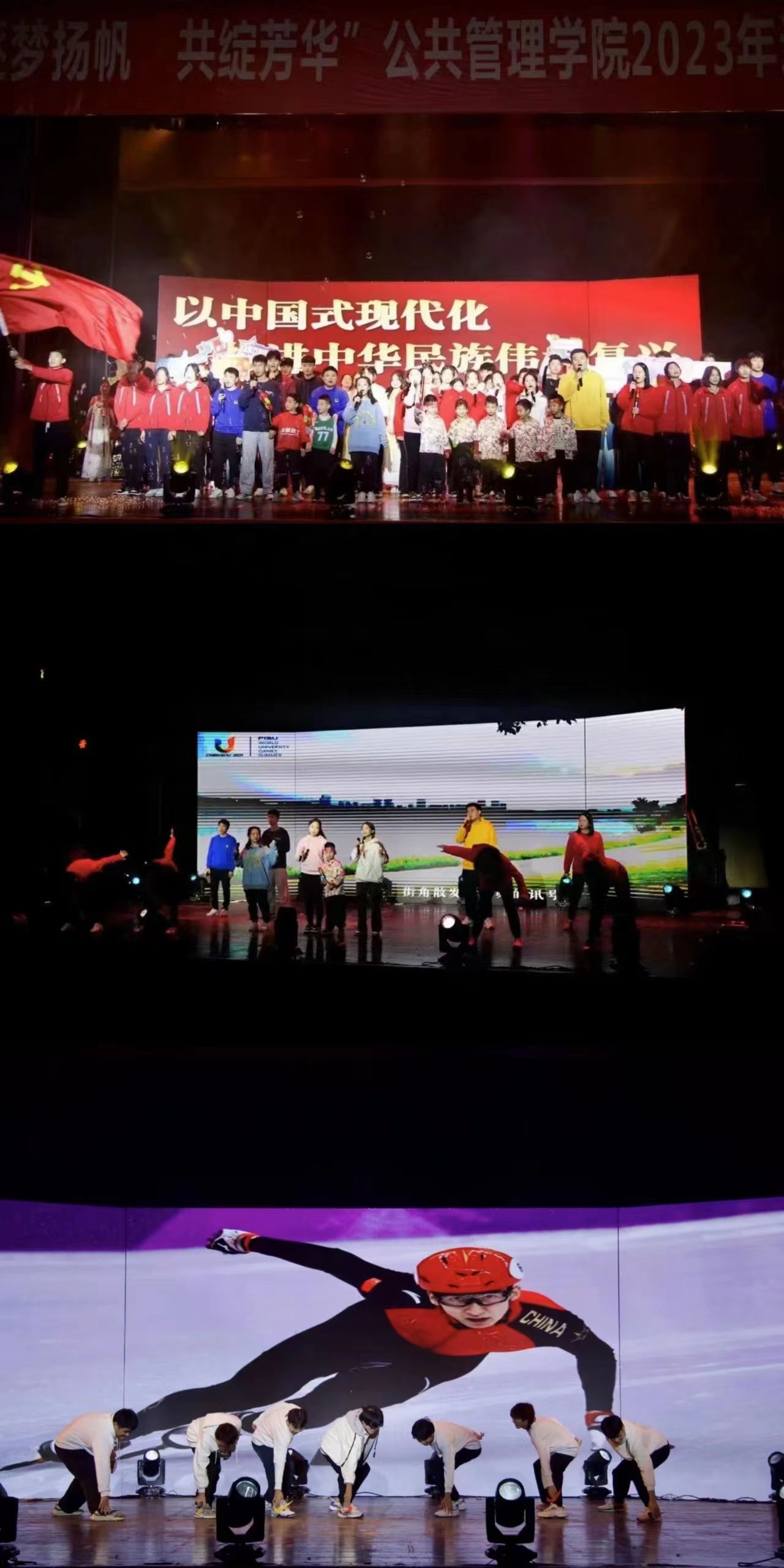 穿越时空,中华文化熠熠生辉,不断焕发着新的生机与活力,正以全新的姿态展现出它独有的魅力。当激情满怀的豪放派穿越时空遇上柔情似水的婉约派,当袅袅婷婷的古代女子跨越历史与现代女孩儿相遇,一切都是那么的不可思议。听!知否知否细腻清新、含蓄隽永;看!国宝汉服独具风华、神采俊逸。古往今来,无数向前奔跑的身影化作一道道微光汇聚在一起。从过去走来,我们为新起点而欢歌;从现在出发,我们为新征程而欢歌。故人虽已去,华彩今又现。政治系的节目,琴声婉转,歌声悠扬,让《这世界那么多人》为之倾倒;交通公共政策研究中心的师生们,在《La La Land》中欢快舞动;吾辈青年传承奋斗,《以青春之我,建设青春之中国》,为民族复兴铺路架桥;公管人使命不改,初心不忘,讴歌2023年的成绩,在即将到来的2024年《再创辉煌》!