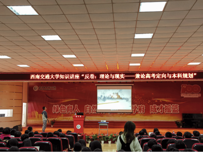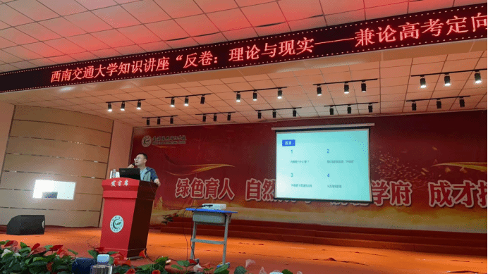 在蓬溪绿然国际学校,王斌老师进行了《反卷:理论与现实——兼论高考定向与本科规划》专题讲座。该校艺体生占比较大,针对这一情况,王斌从“内卷”这一概念的源起出发,结合学生实际情况和喜闻乐见的案例,用“接地气”的语言深入浅出讲解,引发在座同学共鸣。他授以“Fun”与“想象自我”为关键词,鼓励同学们找寻舒展自我的可能性和真正的快乐,学会放大自己的优势,在自己的赛道上跑出最好成绩。在提问环节,薛婧针对同学们有关高考录取、专业设置等问题进行逐一解答,围绕91毛巾哥