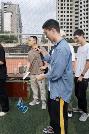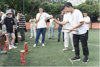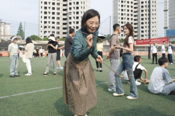 快看,“百步穿杨”挑战开始了!师生各个踌躇满志,瞄准、投掷,羽箭仿佛化作展翅的飞鹰,从手中迅即地飞向终点。
