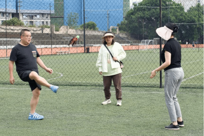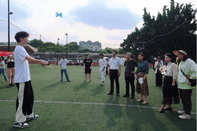 踢抛玉燕环节,小小毽子在师生们手中“毽”步如飞。“一、二、三……”围观的老师和同学们紧张地为挑战者计数,为成功者喝彩。