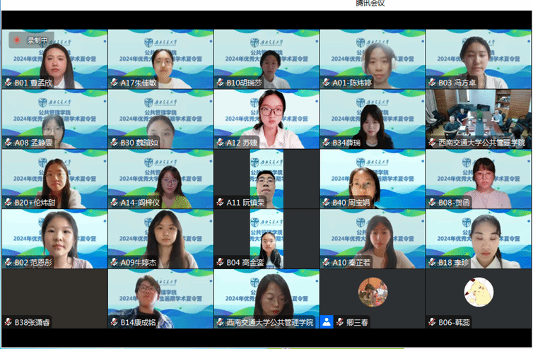 2024年全国优秀大学生暑期学术夏令营顺利举行。本届夏令营采取线上方式举办,来自21所高校的53名优秀大学生入选参加。为期两天的夏令营活动涵盖学院及科研平台介绍、系列学术讲座、学员汇报交流、导师座谈等内容。