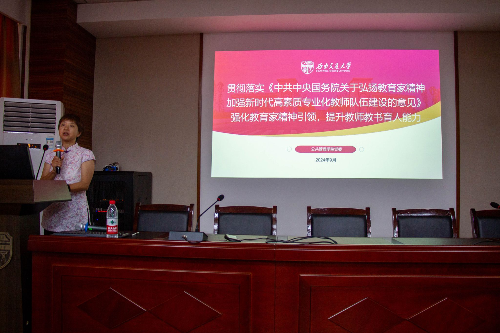 党委书记高凡开展“弘扬教育家精神”专题宣讲。高凡带领与会教师深入学习了中共中央、国务院发布的《关于弘扬教育家精神加强新时代高素质专业化教师队伍建设的意见》,理解教育家精神的核心要义。高凡强调,学院全体教职工要以习近平总书记关于教育的重要论述为指引,全面落实党的教育方针和政策,坚守初心使命,落实立德树人根本任务,知法纪、守底线,将教育家精神转化为执教的理想追求和实践行动,做躬身践行教育家精神的好老师。