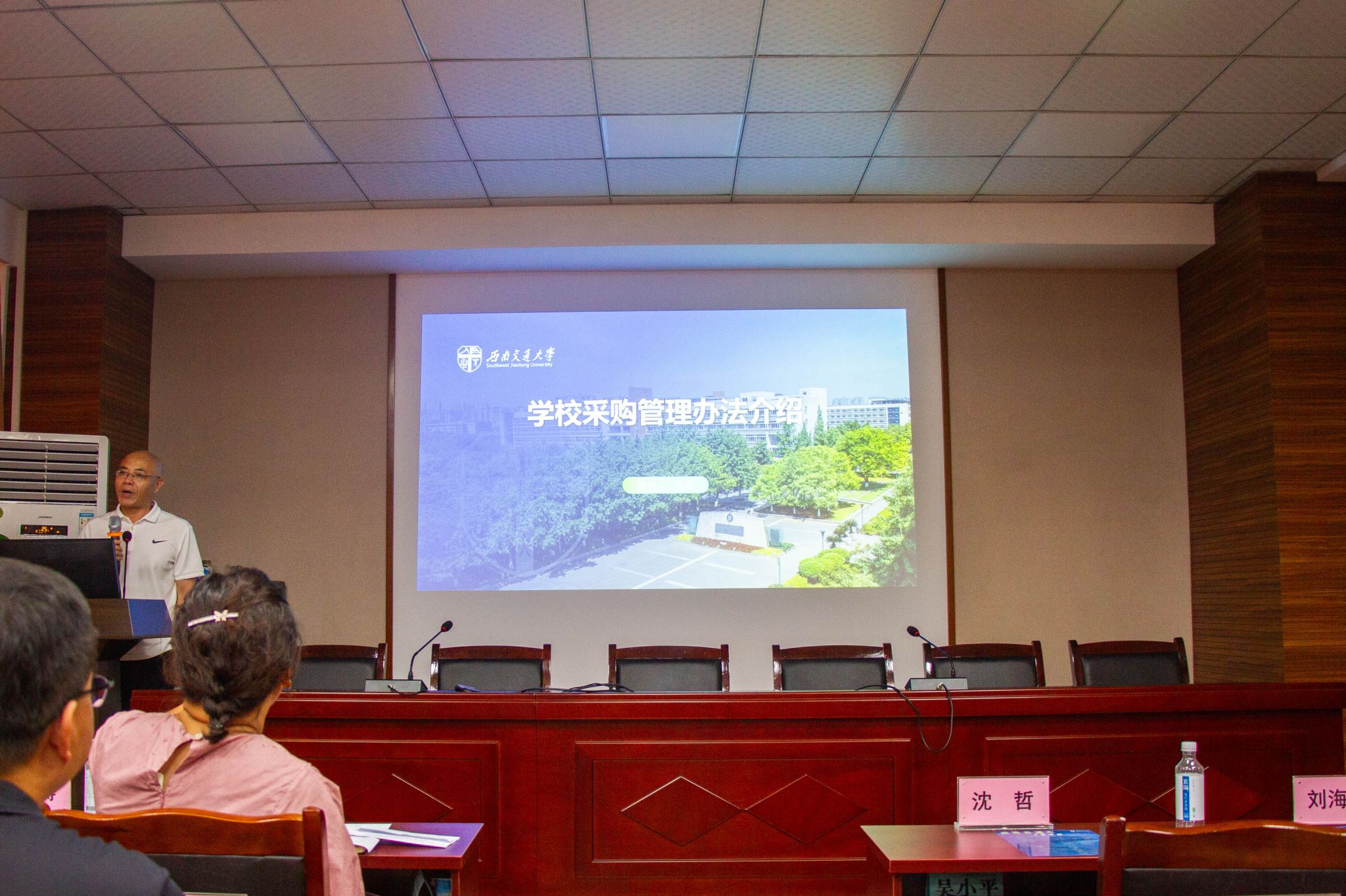 会议第三项议程,计划财务处采购与招标管理办公室副主任冯涛进行学校采购管理办法宣讲。冯涛提出,教职工日常工作、科研教学都与财务报账和采购事项息息相关,希望通过本次宣讲促进学院教职工对于学校采购管理办法的了解。