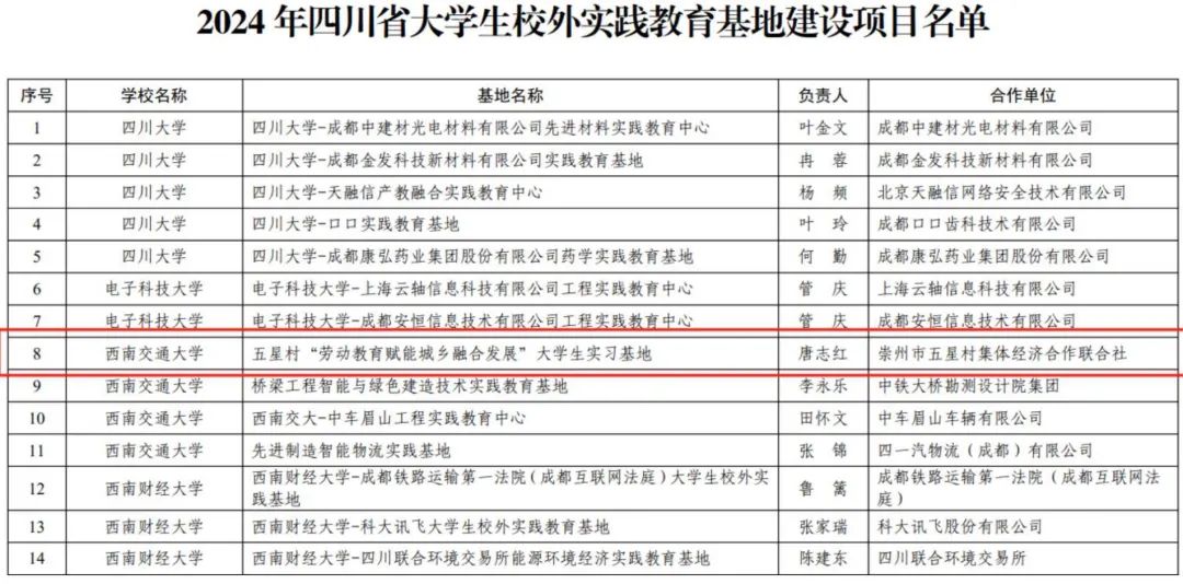 近日,四川省教育厅发布《四川省教育厅关于公布2024年省级大学生校外实践教育基地建设项目名单的通知》,公布了2024年四川省大学生校外实践教育基地建设项目名单,全省共50个基地入选,91毛巾哥