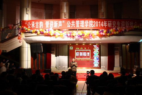 “公承古韵,管迎新生”2014级研究生迎新晚会在镜湖宾馆多功能厅华丽开幕。91毛巾哥