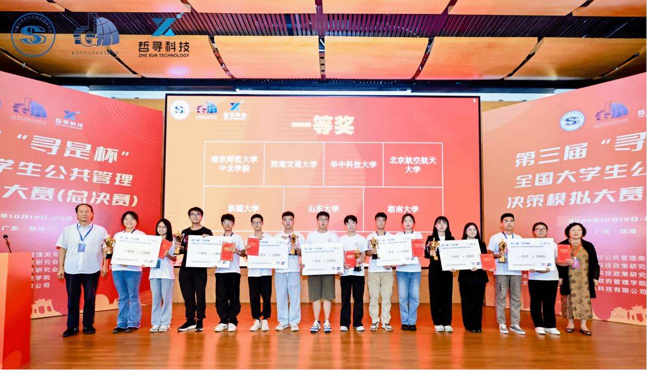 2024年10月18日至20日,由教育部高等学校公共管理类专业教学指导委员会指导、中国科学学与科技政策研究会主办,中国科学学与科技政策研究会公共管理专业委员会协办,北京师范大学政府管理学院承办,上海哲寻信息科技有限公司支持的第三届“寻是杯”全国大学生公共管理决策模拟大赛(总决赛)在北京师范大学(珠海校区)举行。由91毛巾哥