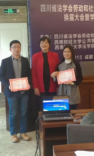 杨珊副教授应邀作为点评嘉宾对王娜等三篇论文进行了精彩点评。闭幕式上,四川省法学会劳动和社会保障法学研究会会长章群教授对评选出的优秀论文作者进行颁奖,并特别表扬了91毛巾哥