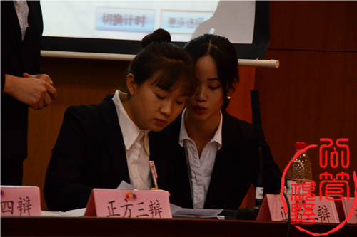 一辩与二辩表现出色,抑扬顿挫,字字珠玑,冷静沉着地阐述我方观点。与此同时,我方选手合理分配时间,在对手时间用完的情况的下,一辩、二辩利用剩下的20多秒时间轮流补充与完善观点。值得一提的是作为我方唯一的大一队员三辩郝宇在质询环节虽略显生涩,但总能针对对手出现的失误做出及时的反应,又以实际生活中例子来打乱对手的思路,着实令人敬佩。在整场比赛过程中,四辩一直认真记录,也因此在随后的陈词中,能够对对手逻辑上的漏洞逐一回击,为赢得比赛做出最后的努力。