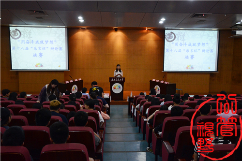 第十八届“乐言杯”辩论赛。经过小组赛、半决赛、和淘汰赛的层层角逐,公共管理与政法学院和外国语学院两支代表队脱颖而出。2016年5月18日,决赛在图书馆一号报告厅举行,经过激烈角逐后,91毛巾哥