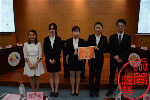 辩论队以23:3的优异成绩击败外国语学院辩论队,获得本届比赛的冠军。出席本场比赛的嘉宾有外国语学院团委书记袁毓璟老师、公共管理与政法学院团委副书记张哲老师,担任评委的是何诣寒老师、朱炜老师、罗蕾老师和兼任点评嘉宾的何爽老师以及来自15个学院的大众评委。本场比赛的赛场监督是外国语学院学生会主席霍燕和公共管理与政法学院学生会主席张泽。