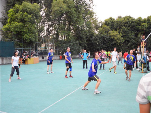 下午18时,在九里校区排球场,公共管理与政法学院和生命科学与工程学院作为下午的男子比赛压轴队伍出场。本次比赛采用三局两胜制,雷叙川、刘斌、何德文、杨劼、陈冬菊、赵巍、史云明7位老师参加了此次比赛。