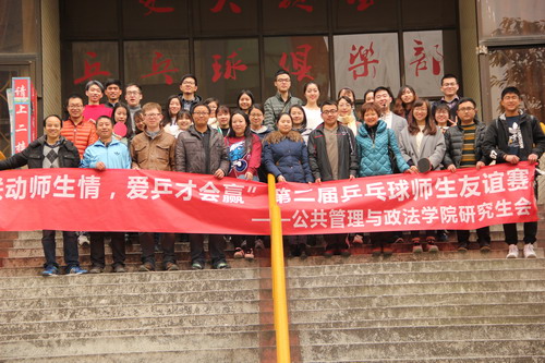 师生精神风貌,加强学生与老师之间的交流互动,公共管理与政法学院第二届师生乒乓球友谊赛于2017年3月16日下午1:30在九里校区詹天佑体育馆正式拉开帷幕。本次比赛由公共管理与政法学院工会主办,学院研究生会承办。作为新学期开始的第一项体育活动,本次乒乓球赛吸引了学院师生的广泛关注,大家纷纷积极踊跃报名,参与热情非常高。