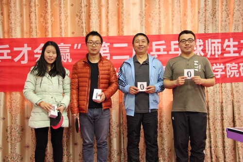 下午1:30学生淘汰赛正式开始,精彩连连,许多选手都表现出了精湛的球技。李万莉同学在淘汰赛中率先以11:6的比分顺利晋级,在积分循环赛中更是以绝对的积分优势,获得本届学生积分赛的女单冠军。男单冠军由廖福崇同学斩获。经历过学生淘汰赛后,之后老师间的淘汰赛气氛更加紧张而激烈。刘斌老师侧旋球率先发球得分,随后加强正手位抢攻,连续得分,成功胜出;史云明老师通过抢攻搏杀和灵活的反手进攻,成功晋级;陈冬菊老师在与对方的对拉中占据主动,连续扣杀得分,顺利晋级;随后在激烈的比赛中,王再锋老师、周贤永老师、申蓉老师、唐立敏老师、李明老师也都杀出重围,顺利晋级到师生友谊赛中。