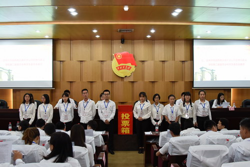 新一届团委会书记、副书记。薛婧同志高票当选团委书记。