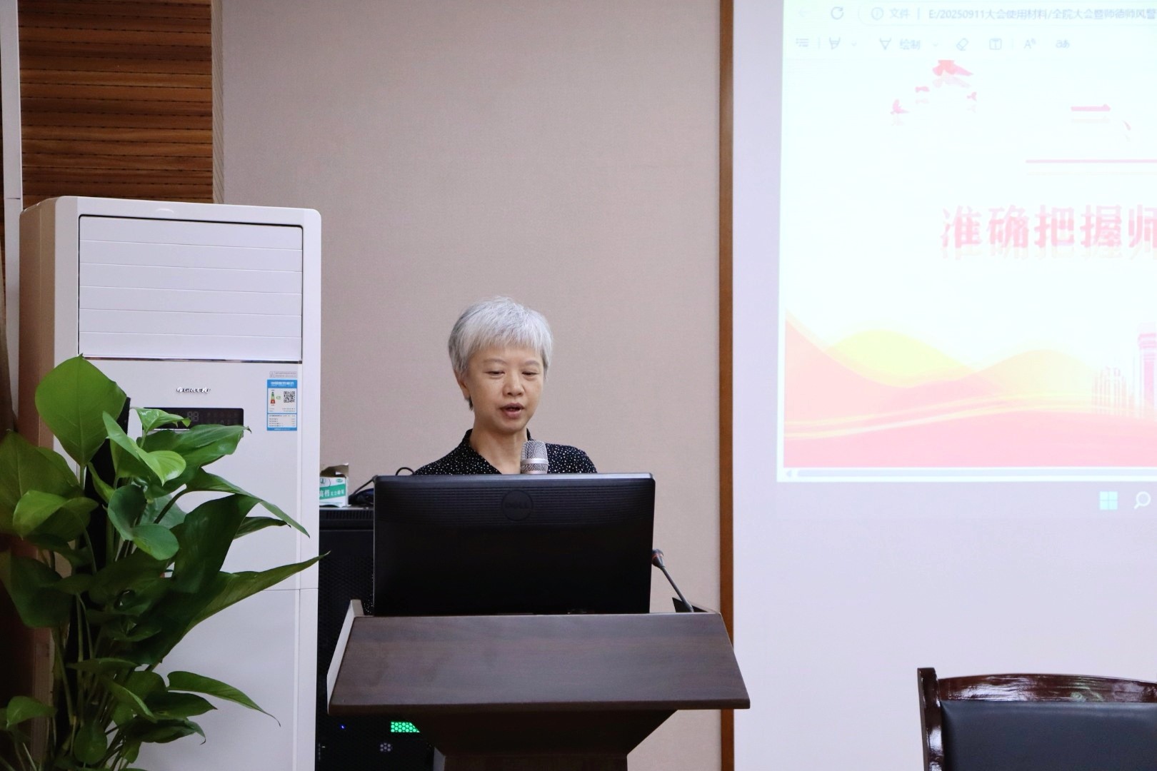 大会第一项议程,学院党委书记高凡通报了学院深入贯彻中央八项规定精神学习教育的情况。她指出,学院在政治理论学习、制度建设和成果展示方面取得积极成效,但在学习深度、制度执行力度及师生监督等方面仍存在不足,亟需进一步改进。随后,学院开展了师德师风警示教育,结合典型案例进行剖析,强调全体教职工要不断提高政治站位,坚守立德树人初心。