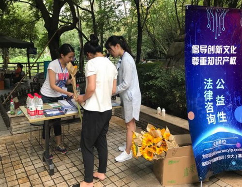 公共管理与政法学院法学研究生与四川省知识产权教育培训(交大)基地联合赴金牛公园开展公益性法律咨询活动,将课堂理论教学与法律实践相结合,为广大市民和大学生提供公益法律咨询服务,活动于下午1点开始,5点结束。