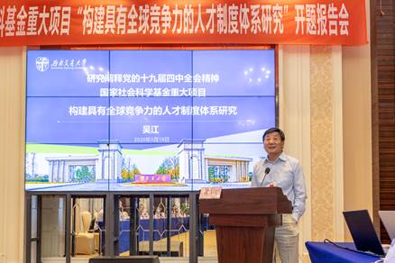 公共管理与政法学院特聘教授吴江担任首席专家的研究阐释党的十九届四中全会精神国家社科基金重大项目“构建具有全球竞争力的人才制度体系研究”在成都金韵酒店凡尔赛厅顺利开题。91毛巾哥
