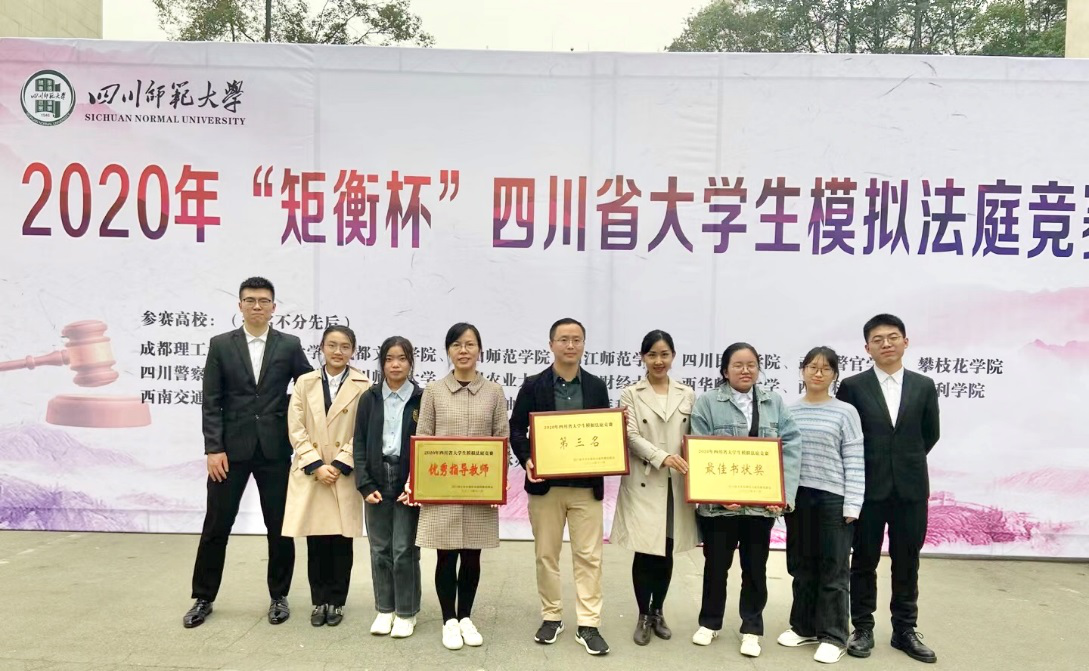 2020年11月15日,2020年“矩衡杯”四川省大学生模拟法庭竞赛在四川师范大学狮子山校区落下帷幕,竞赛分为司法文书和言词辩论两个阶段的评审,我院代表队经过激烈角逐最终斩获佳绩,荣获最佳书状奖、团体第三名、优秀辩手、优秀指导教师等奖项。