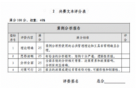 在初赛阶段,参赛队伍应紧密围绕我国当前公共管理、公共政策领域面临的重大或热点问题。选题范围包括但不限于:政府管理创新;地方治理创新;城市和社区治理问题;政治、经济、社会、文化、生态等领域的政策议题;公共与非营利组织管理;运用现代技术手段和方法改进公共治理等。