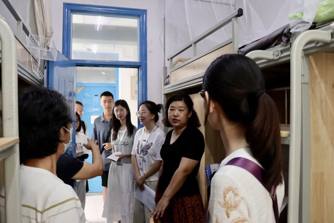 ,询问同学们的住宿情况与生活状态,并针对其反映的情况一一作出回应,给出暖心建议。