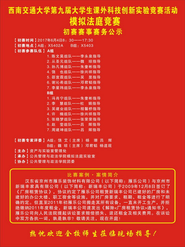 模拟法庭竞赛(2017)初赛赛事赛务公示