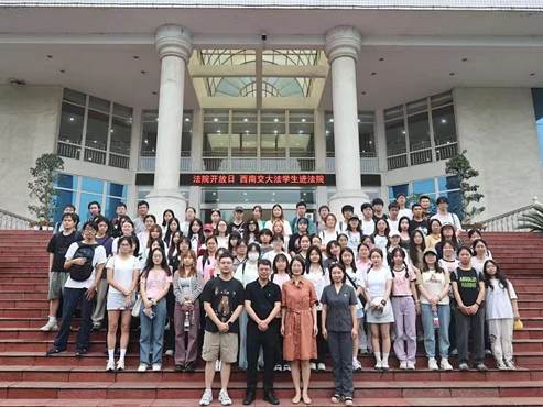 师生来到眉山市东坡区人民法院,现场旁听庭审活动。整个庭审过程程序严谨、辩法释理,给大家上了一堂生动的法学实践课。通过零距离接受法治教育,沉浸式体验审判文化,同学们切实感受到了法律威严和司法公正,亲身体验到真实的司法程序。