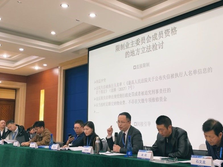 邓君韬副教授在“地方立法理论与实务”平行论坛做《地方立法可以限制业主委员会成员参选资格吗?——公权介入业主委员会自治权的限度》主题发言,认为地方立法不宜限制业主委员会成员资格,后《民法典》时代更应注重调适业委会自治与国家善治之间的关系,天津师范大学法学院李敏副教授、上海师范大学法政学院石文龙教授作为评议嘉宾进行了与谈回应。