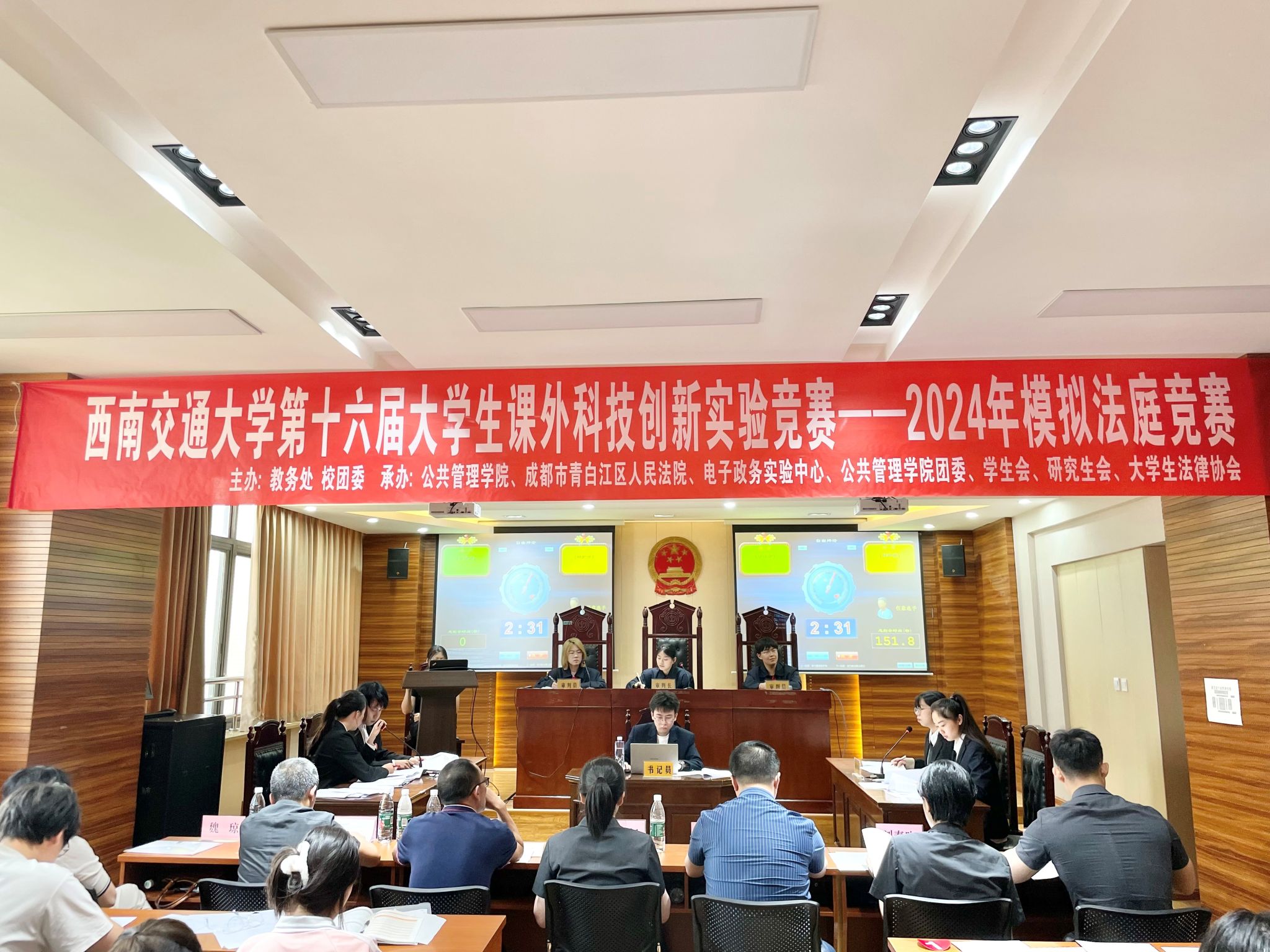第十六届大学生课外科技创新实验竞赛2024年模拟法庭竞赛在4月初拉开帷幕,经过初赛对16支参赛团队提交的司法文书进行匿名评审以及复赛对晋级的八支参赛团队言辞辩论评审,A、B两组分别有一支参赛团队晋级模拟法庭竞赛决赛,并于2024年5月26日下午14:00-17:00在信息楼01417模拟法庭实验室展开最后的激烈角逐。