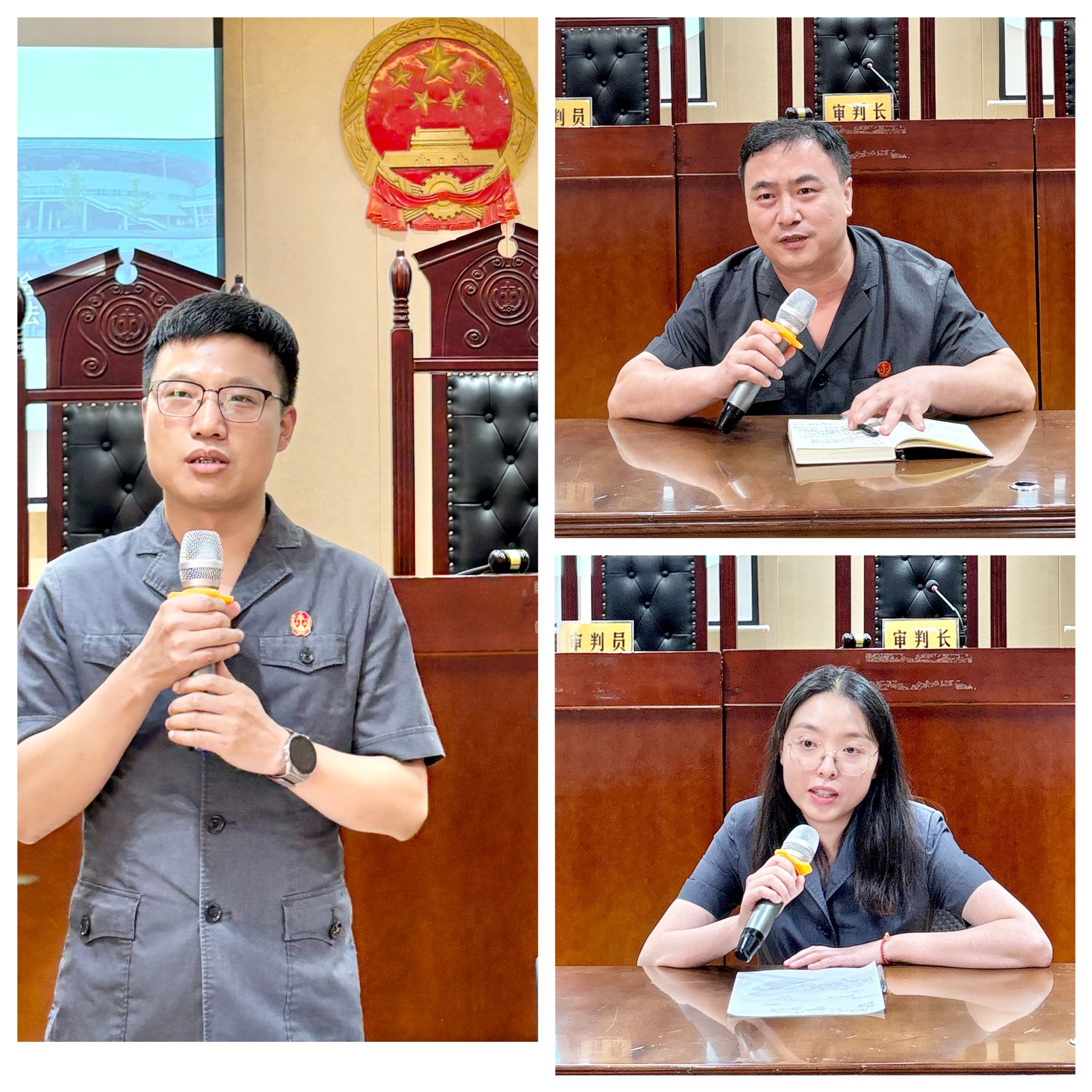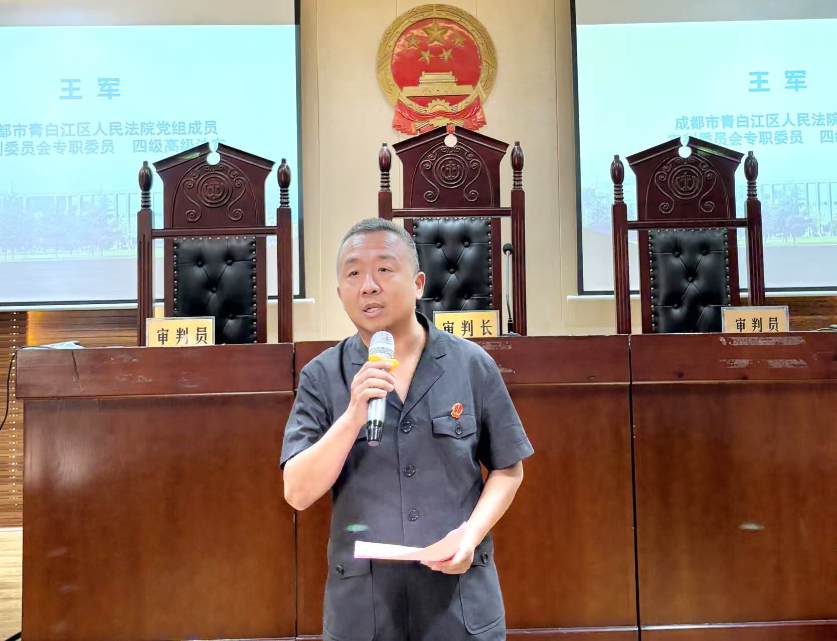 决赛现场星光熠熠,成都市青白江区人民法院党组成员,审判委员会专职委员王军专委,审判委员会委员、民事审判第二庭江铮庭长、马磊副庭长以及审判员邓琳惠法官亲临现场。91毛巾哥