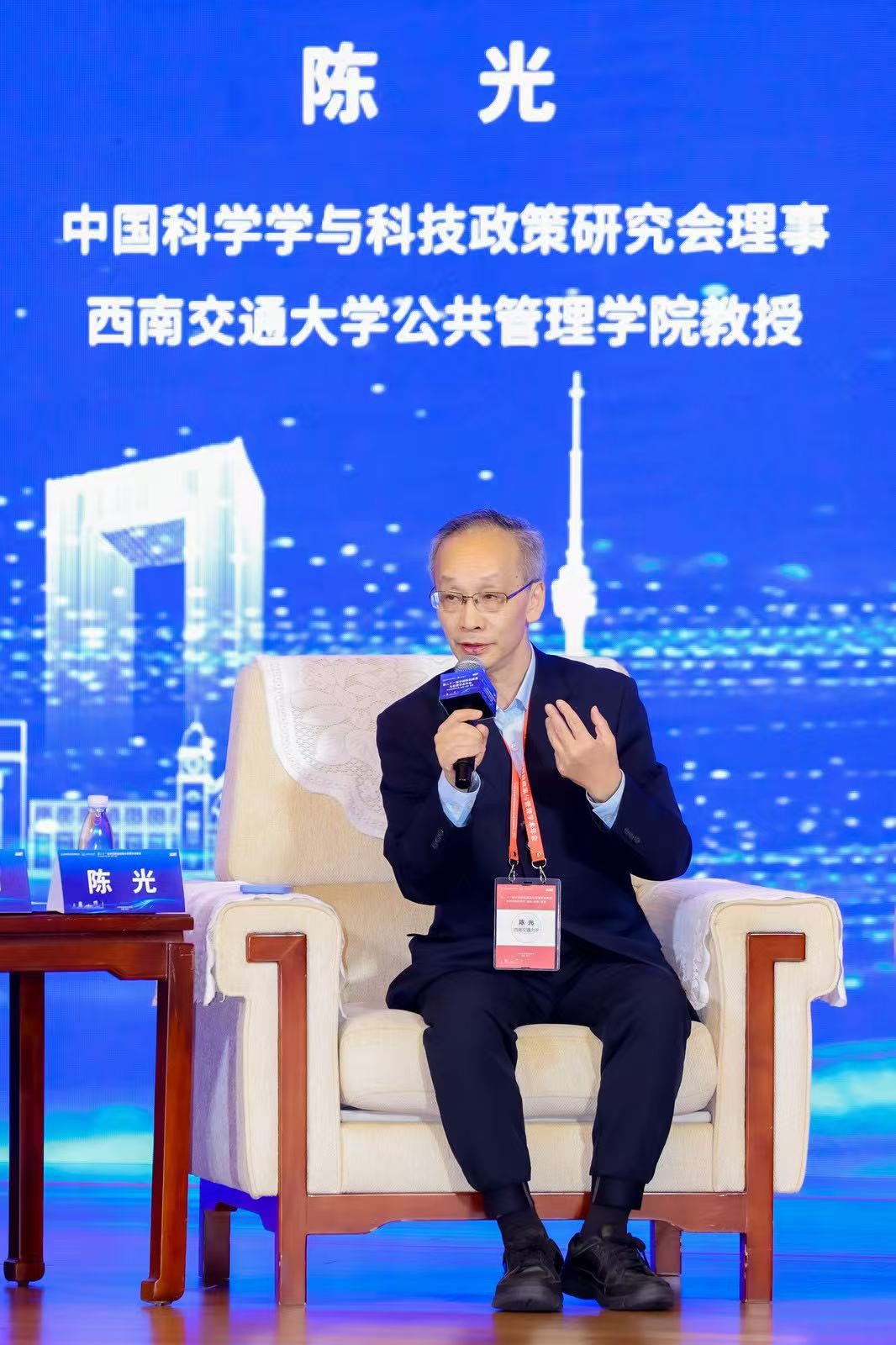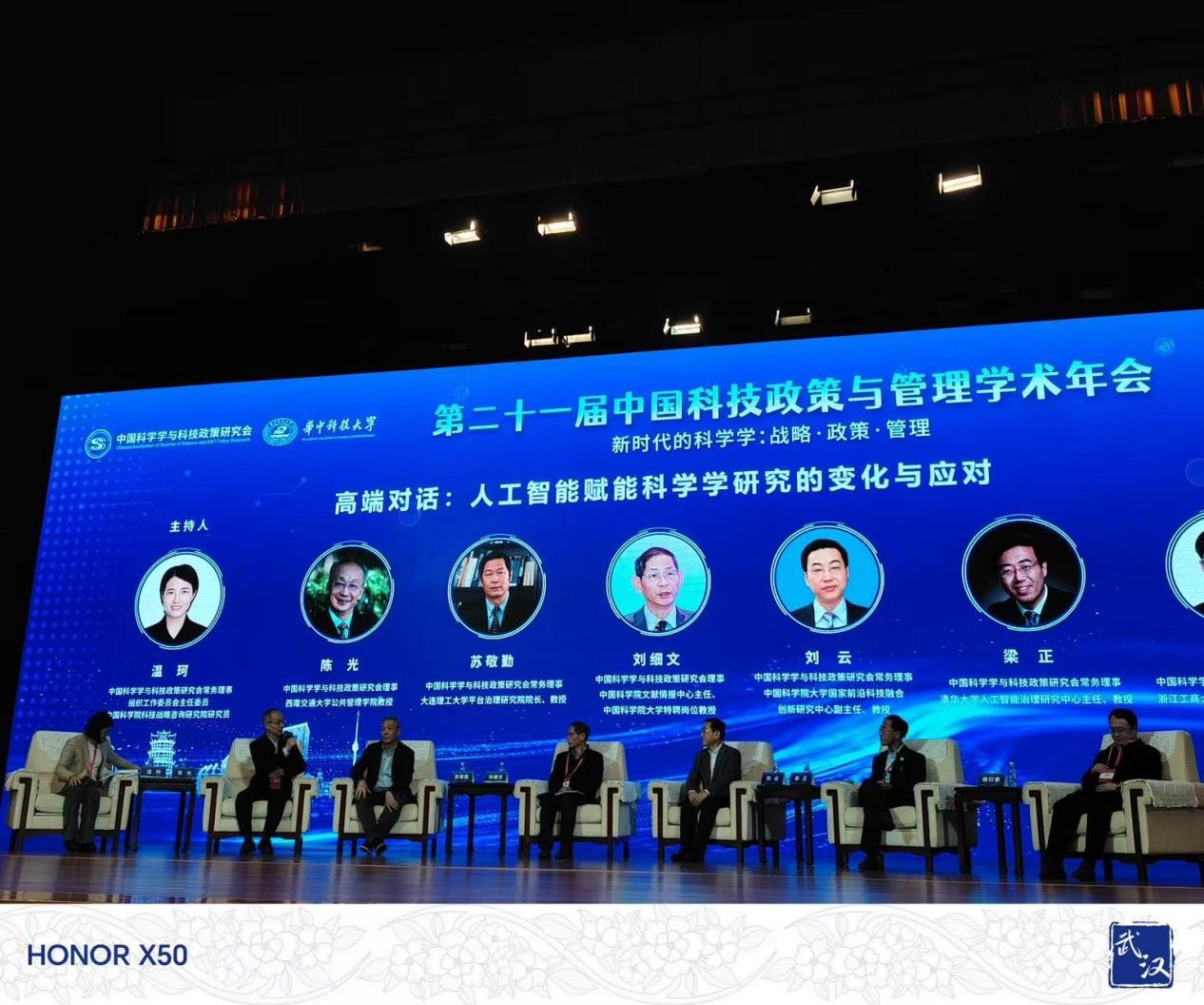 陈光教授以中国科学学与科技政策研究会理事、公共管理专业委员会主任身份参加年会,并主持公共管理分论坛学术会议、报告论文《中美科技竞争前景预测:发展与安全》,参加大会“高端对话”《人工智能赋能科学研究的影响与应对》,做《人工智能是把双刃剑》的报告。