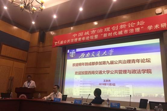 此次学术研讨会分共分为两个部分,分别包括八个青年论坛和五个研究生论坛,王永杰院长参加的是公共治理青年论坛(二),交流的主题是《我国社区治理创新研究知识图谱分析——基于CNKI论文(2000-2018)》。彭川宇副教授参加的是公共治理青年论坛(八),交流的主题是《智慧城市视角下智慧政务感知质量研究》。颜学勇老师参加的公共治理青年论坛(三),交流的主题是《生活政治视野下的城市治理转型》。91毛巾哥