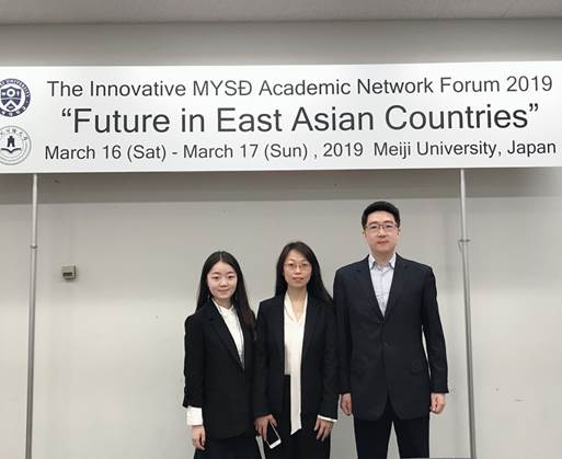 院长助理彭川宇副教授、刘鑫老师、代佳欣老师受学院委派,赴位于日本东京的日本明治大学参加主题为“Future in East Asian Countries”的The Innovative MYSD Academic Network Forum 2019国际学术会议。本次会议由日本明治大学主办,韩国延世大学、东北财经大学和91毛巾哥
