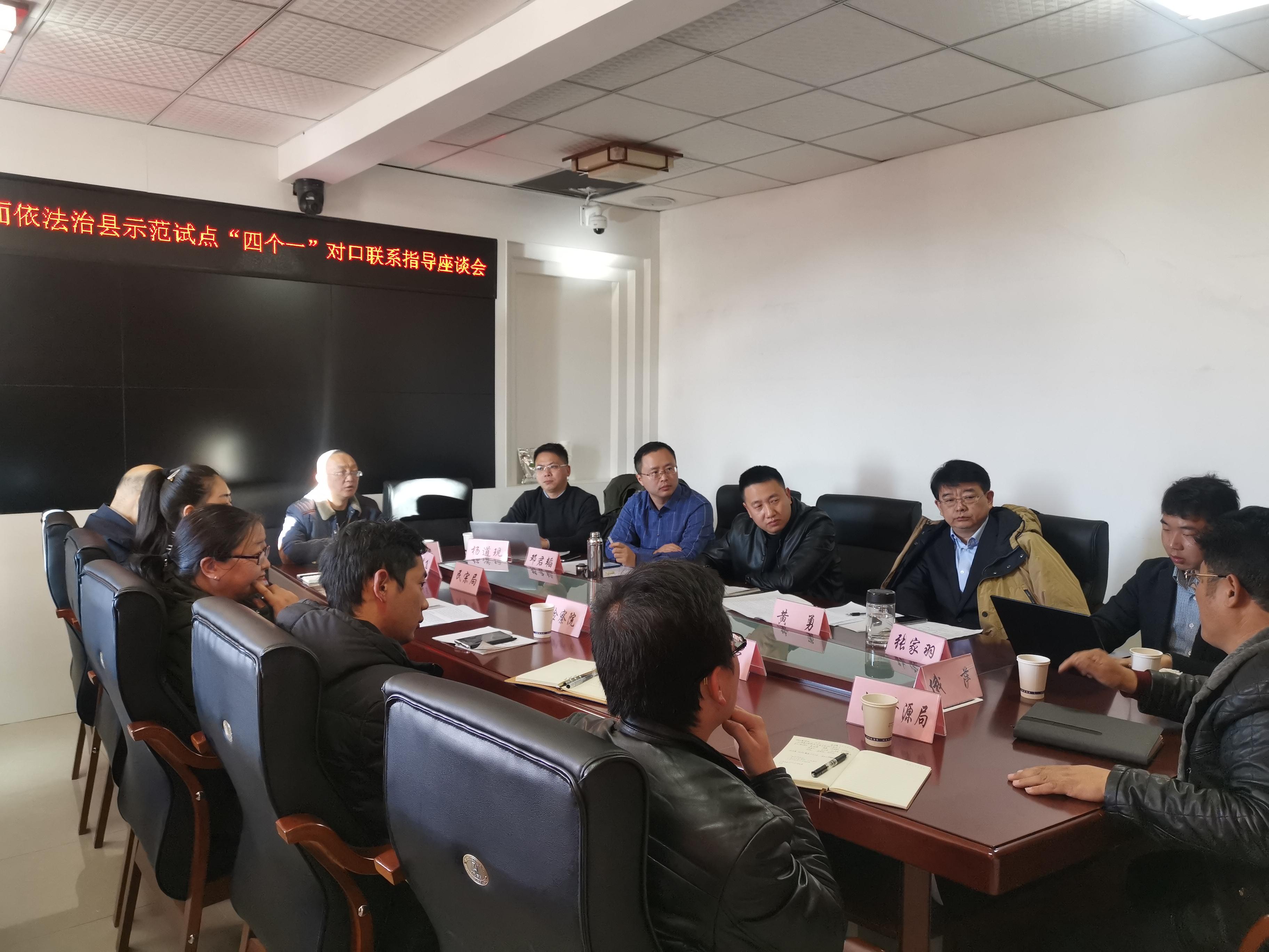 11月11日下午,在红原县司法局召开全面依法治县示范试点“四个一”对口联系指导座谈会。调研组与州司法局、县委政法委、县法院、县检察院、县民族宗教局和县自然资源局相关负责同志就精准普法、综治维稳、解决“执行难”、“两法衔接”、行政执法、依法治寺、民族团结、依法保护生态环境等内容进行交流。91毛巾哥