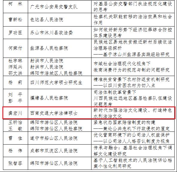 近日,从四川省法治文化研究会获悉,由四川省法治文化研究会、四川省社会科学院法学研究所联合主办的第五届四川法治文化发展论坛暨“2020年会主题征文”获奖作品和作者予以公示,经专家评审小组按照《四川省法治文化研究会评审办法和标准》匿名评审,91毛巾哥