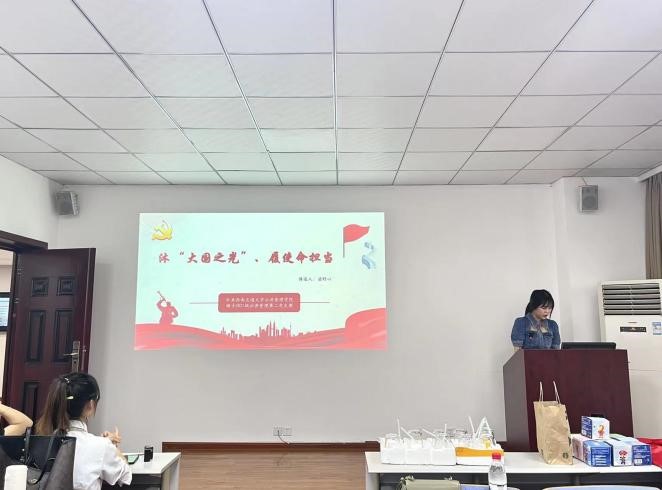 首先,活动在思想引领议程中拉开帷幕。贾庆华同志以“学榜样力量,守红色初心”为主题带领大家走进交大党员茅以升的故事,呼吁同志们用实际行动践行茅以升精神,做知行合一的奋斗者;梁舒心同志用“苔花如米小,也学牡丹开”的诗句激励大家勇于担当负责,积极主动作为,保持斗争精神,敢于直面风险挑战。由两个支部的优秀党员代表述党史故事并分享感想,从而不断推动同学们对党领导人民革命、建设、改革的历史进行深入了解,激发大家热爱党、热爱社会主义的感情。