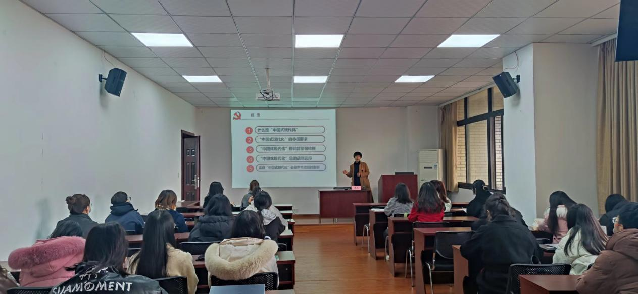 高凡书记指出,党的二十大报告明确提出,中国式现代化是中国共产党领导的社会主义现代化既有各国现代化的共同特征,更有基于自己国情的中国特色。中国式现代化的本质要求即坚持党的领导、坚持中国特色社会主义、坚持高质量发展、坚持发展全过程的人民民主,要丰富人民的精神世界,同时还要实现全体人民的共同富裕,促进人与自然的和谐共生,共同推动构建人类命运共同体,创造人类文明的新形态。中国式现代化的理论背景与其本质特征相对应,是中国基本国情;中国式现代化的理论依据,既包含习近平总书记的各项重要论述,又包含马克思主义对于资本主义发展规律的揭示、马克思主义对于未来社会的设想以及马克思主义对现代化道路多样性的阐释。党的二十大报告提出了两步走的中国式现代化总的战略安排,因此未来五年是开局起步的一个关键时期。高凡书记提到,中国式现代化是一个发展的过程,未来它会随着我们对理论和实际认识的加深而不断更新,要着重理解和把握作为中国式现代化的最终目标、结果导向,其最终落脚点是“推动高质量发展”。同时,高凡书记向同学们阐释了在实现中国式现代化过程中必须牢牢把握的五项准则,即要坚持和加强党的全面领导,要坚持中国特色社会主义道路,要坚持以人民为中心的发展思想,要坚持深化改革开放,要弘扬斗争精神。最后,高凡书记强调所有党员要团结一致,要紧密围绕在以习近平同志为核心的党中央周围,每个人都要为全面建设社会主义现代化强国、全面推进中华民族伟大复兴贡献自己的力量。
