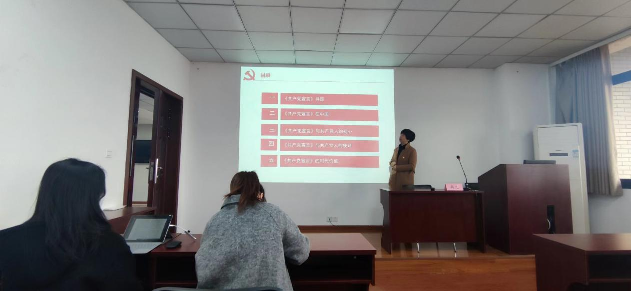 读共产党宣言,悟初心使命。高书记从《共产党宣言》的发展踪迹和《共产党宣言》和中国的故事生动回顾了《共产党宣言》的发展历程。《宣言》是新时代中国共产党人强大的精神动力,《宣言》虽然诞生于170多年前,但《宣言》中蕴含的马克思主义立场观点方法却始终闪耀着真理的光芒,仍然是新时代中国共产党人强大的精神动力。从《宣言》的根本立场到以人民为中心的发展思想。这使中国共产党一贯坚持的人民立场又得到了进一步的强化。作为共产党员,更应该主动学习,积极吸收。