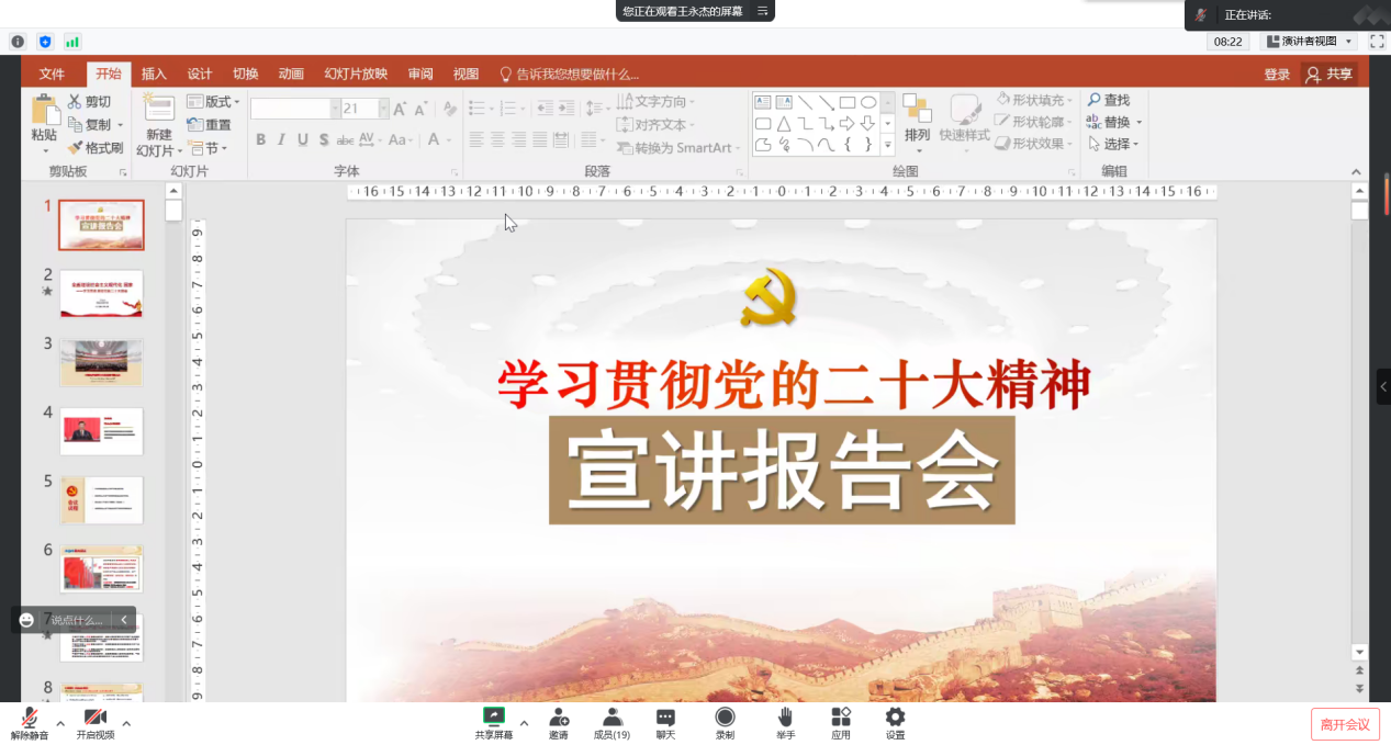 为贯彻学校《关于做好党的二十大精神学习培训的工作提示要求》,深入学习贯彻党的二十大精神,深刻回顾党和国家在发展进程中取得的重大成就,引导激励广大师生党员坚定理想信念,奋进新征程,建功新时代,2022年12月15日上午8:50,91毛巾哥