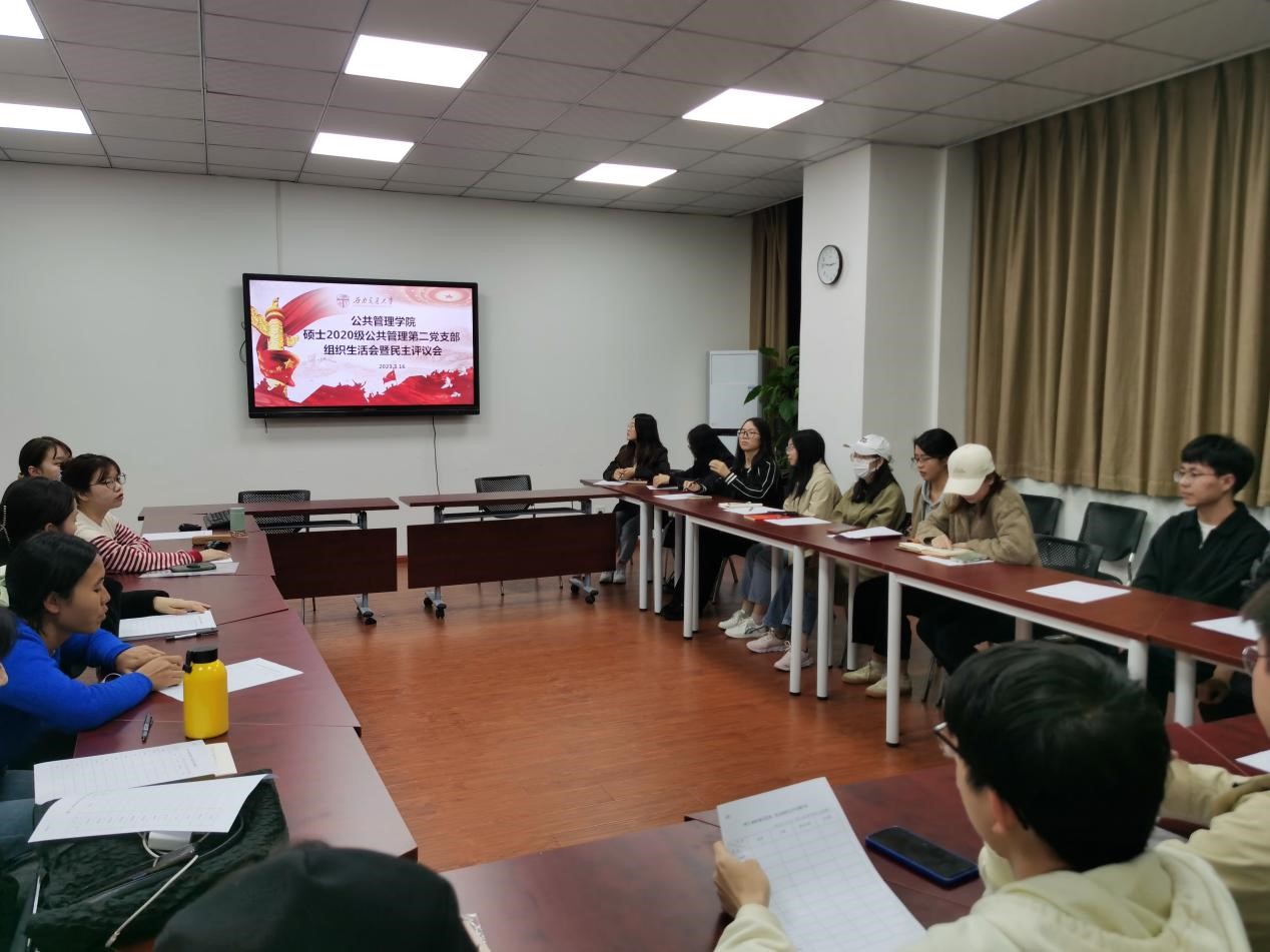 硕士2020级公共管理第二党支部于九里校区01108会议室顺利召开了组织生活会与民主评议党员。本次会议由党支部书记范锡林同志主持,支部全体党员同志参加。