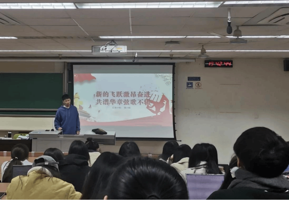 各入党积极分子小组按照顺序,依次上台,从科教兴国、文化自信、法治建设、国家安全、生态文明建设、伟大变革、乡村振兴、伟大建党精神、习近平主席重要回信精神、脱贫攻坚精神、科学家精神、人类命运共同体等多个主题进行汇报展示。以学促讲,以讲带学,入党积极分子通过积极自学、团队研学、集中汇报等多形式、全过程,深刻感悟和体会党的领导事业和中国特色社会主义伟大实践,不断思考和体会共产党人接续奋斗的精神内核和“为中国人民谋幸福,为中华民族谋复兴”的初心使命。