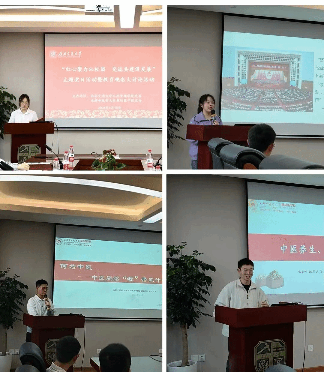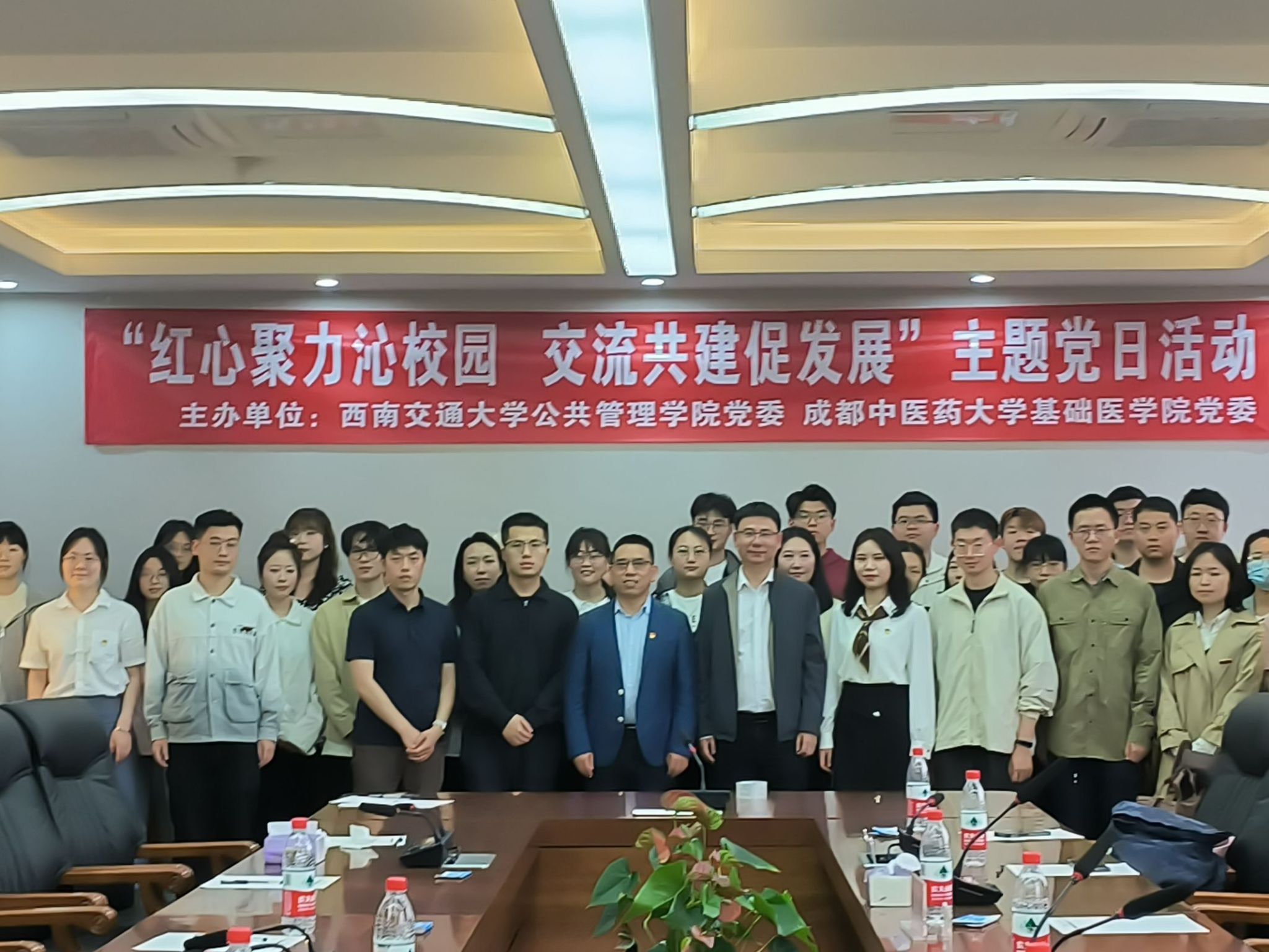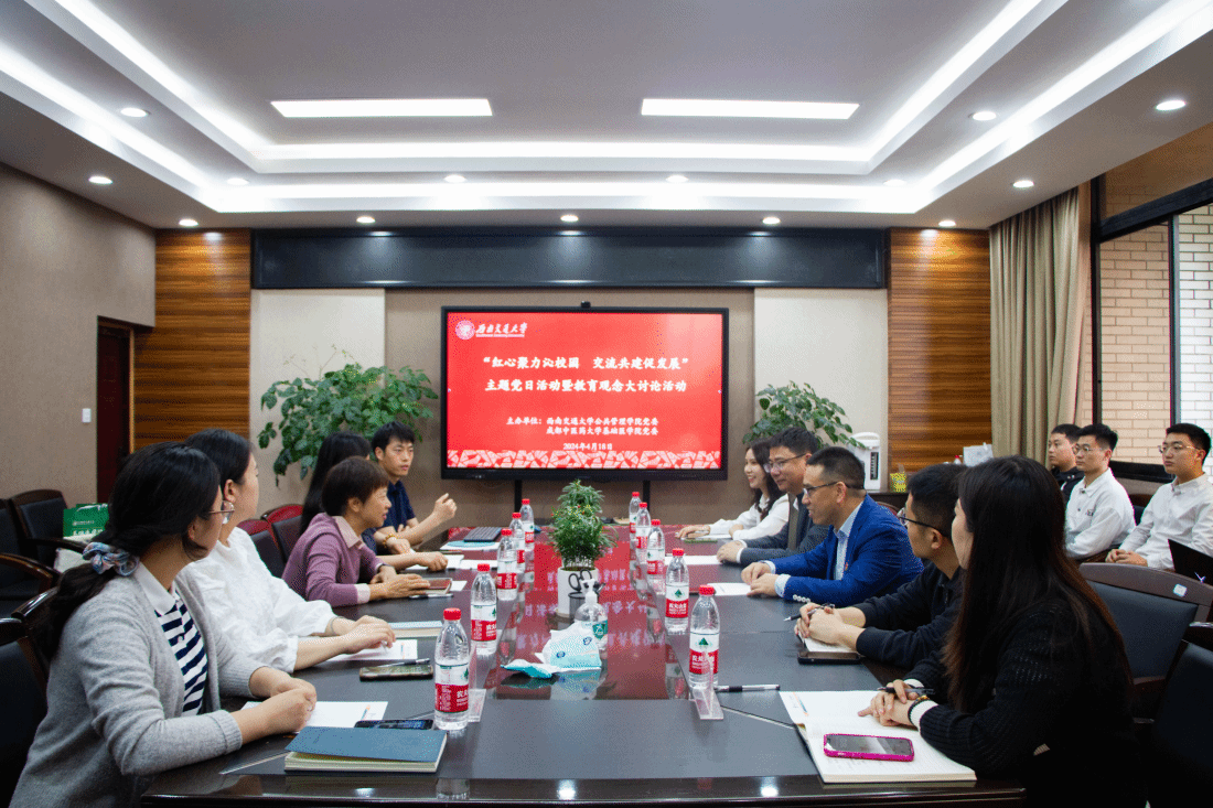 九里校区01416会议室联合开展“红心聚力沁校园,交流共建促发展”主题党日活动暨教育观念大讨论活动。学院党委书记高凡,成都中医药大学基础医学院党委书记刘世云,基础医学院党委副书记、纪委书记周仕轶,学院专职组织员邓改娥及两院学生辅导员、40余师生党员代表参加本次活动。