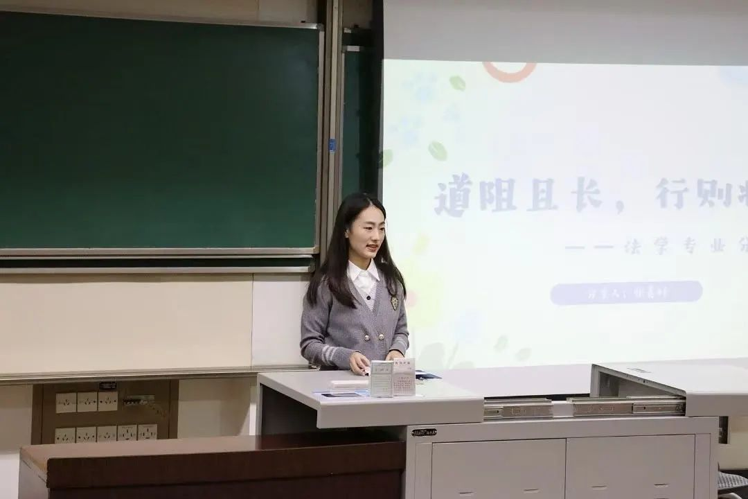 九里校区J4223教室举办法学专业学习分享会,邀请到本科2021级陈炜婷、张菁妤两位同志为支部成员以及低年级同学分享专业学习、科研竞赛以及实习实践等方面的个人经验和心得体会。